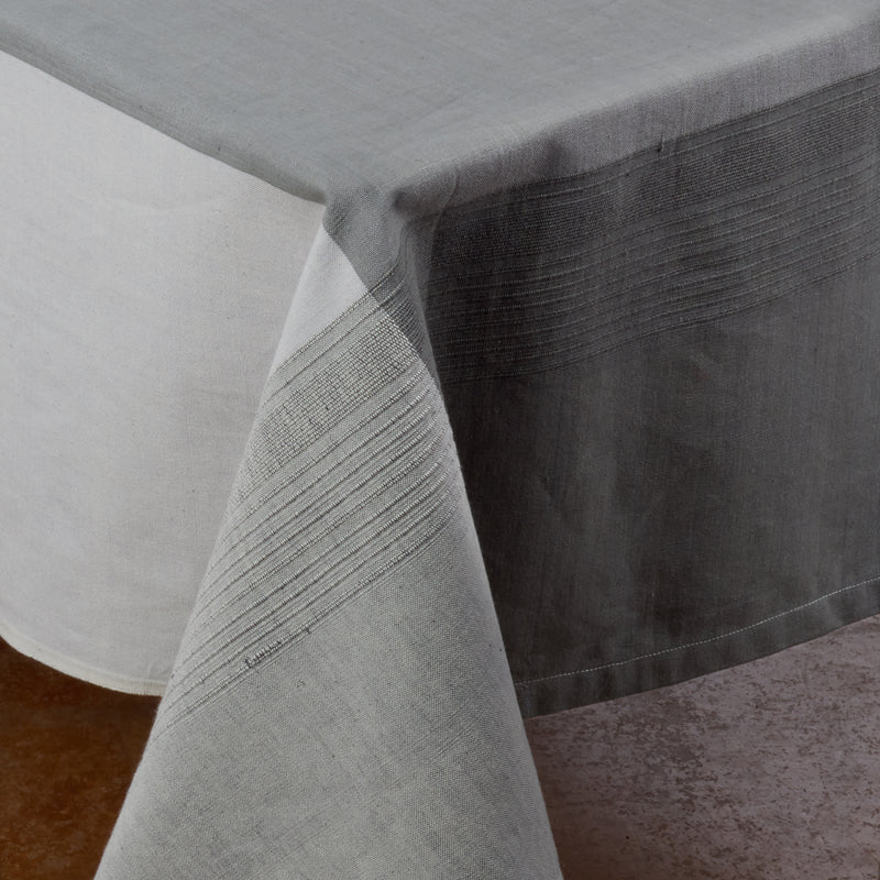 This is a pure cotton tablecloth, woven by hand on manual looms and enhanced with a complex weave to create a raised texture, which conveys the beauty of handloom weaves and cannot be reproduced on machines.